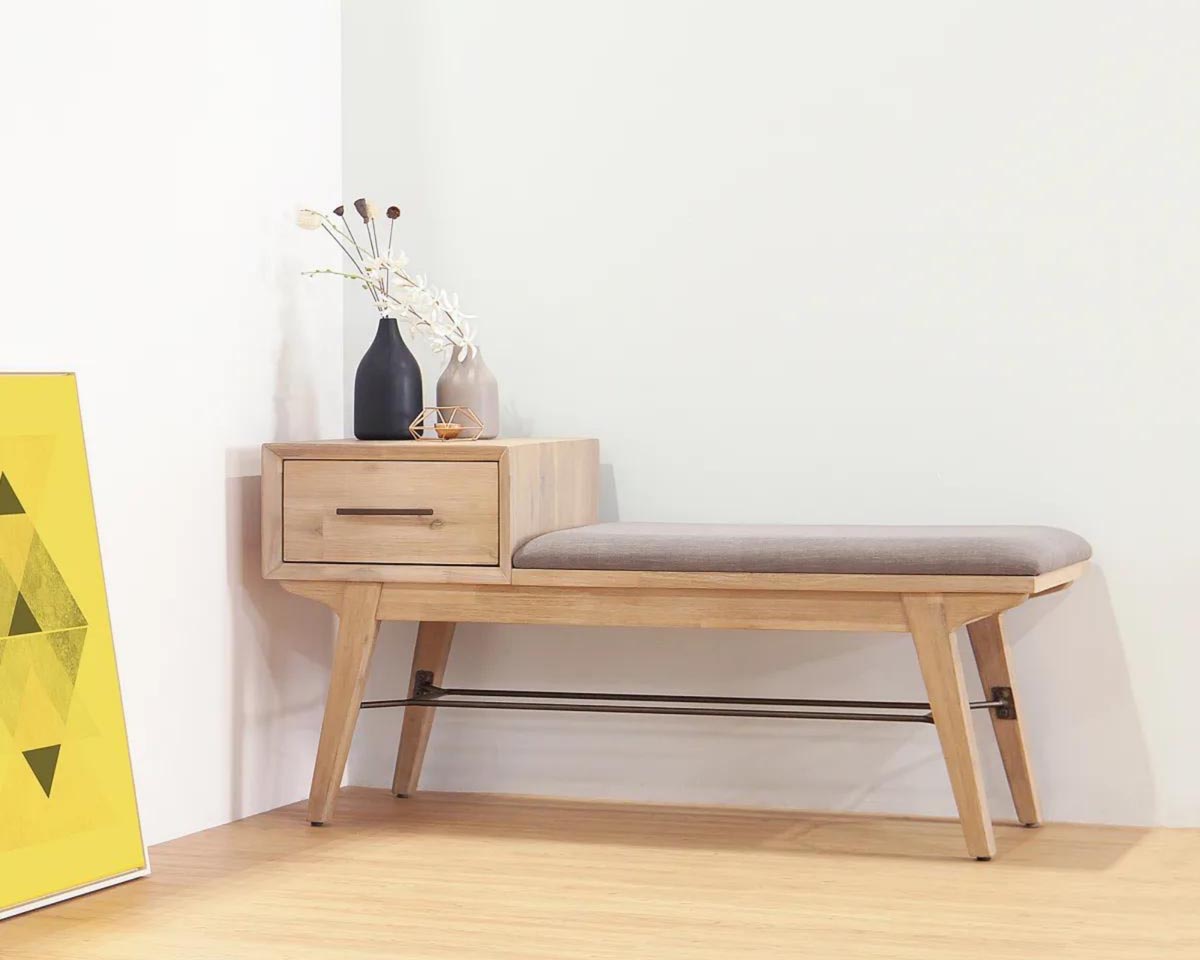 您的前门需要一件功能简化的家具吗?就是这个。有一个座位区,可以使鞋子更容易,穿上定期磨损的鞋类和侧面的小抽屉,以便将袜子等配件储存。